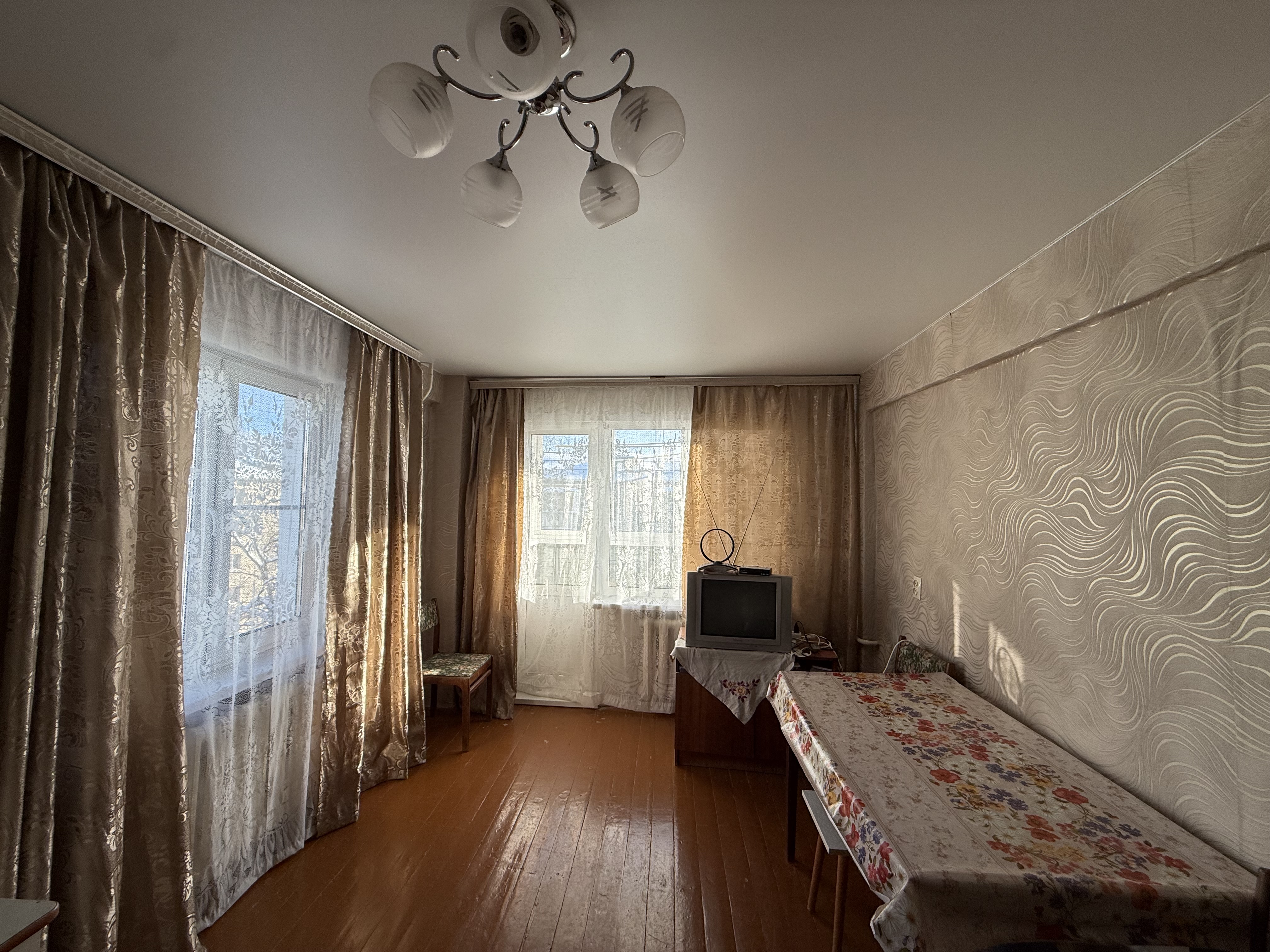 Продаётся однокомнатная квартира на пятом этаже пятиэтажного панельного дома в самом центре города по улице Маршала Жукова дом 42. Год пoстpойки 1962. В квартире выполнен косметический ремонт. В комнатах обои светлых тонов, деревянный крашенный пол, натяжной потолок в комнате. Санузел — совмещённый. Окна и балкон — остеклены ПВХ. Адекватные соседи. Отличный вид из окна. Хорошее жилое состояние, сухая, тёплая квартира.